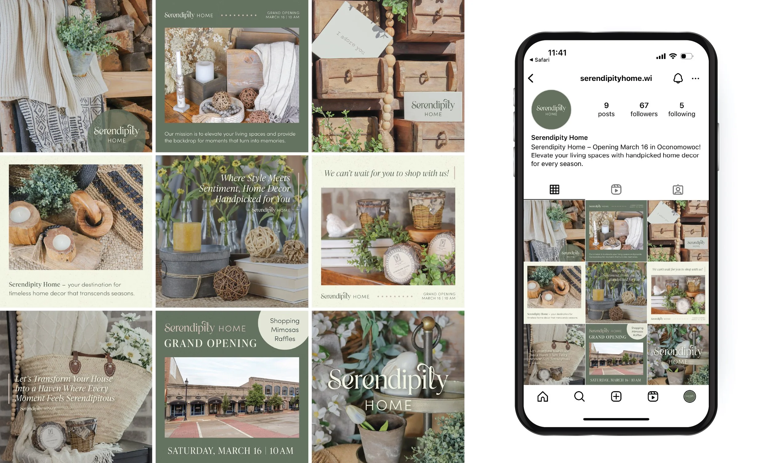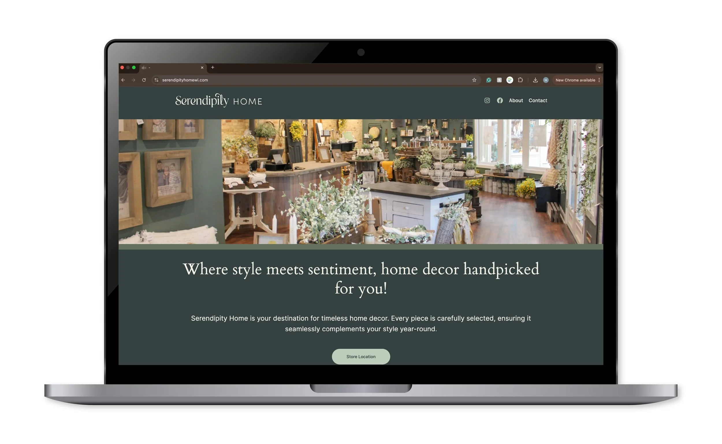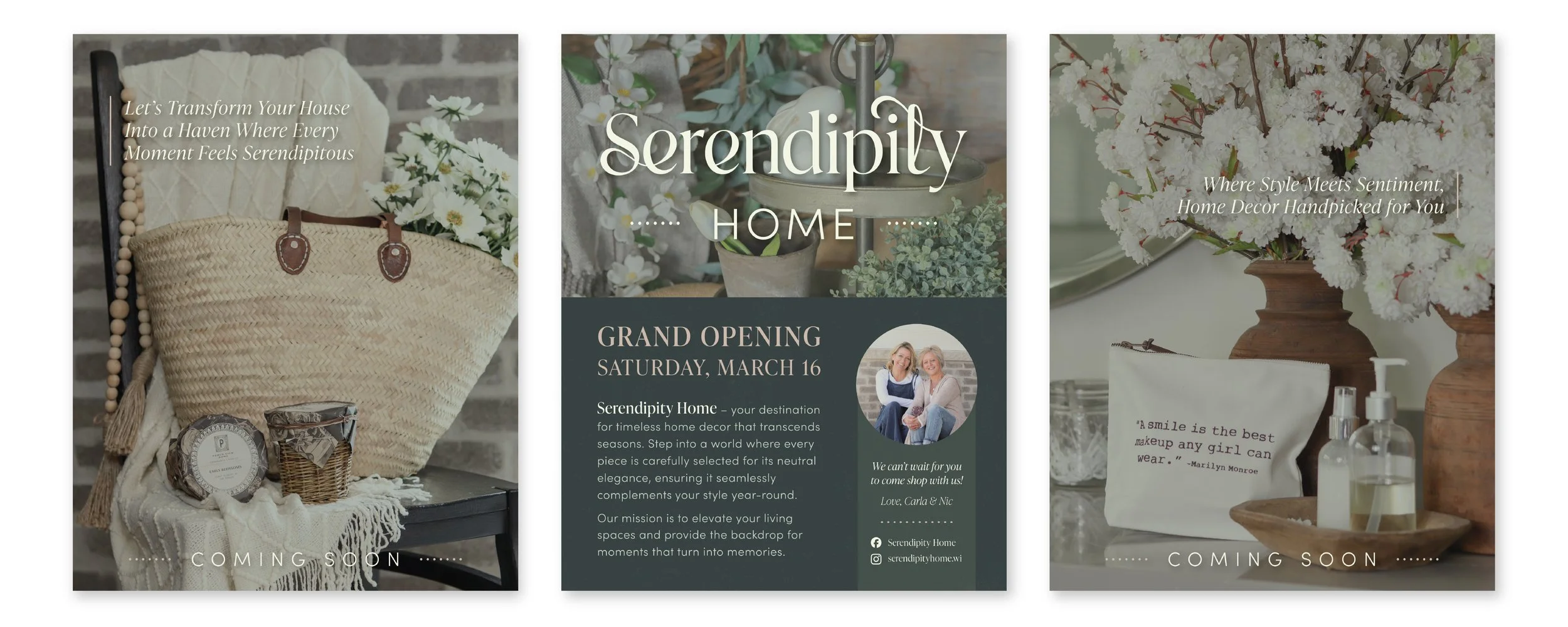 Serendipity Home is a home décor boutique in Oconomowoc, Wisconsin. I partnered with designer Mackenzie Brinks to develop the brand identity ahead of the store’s 2024 launch, working closely with owners Carla and Nicole to bring their vision to life.